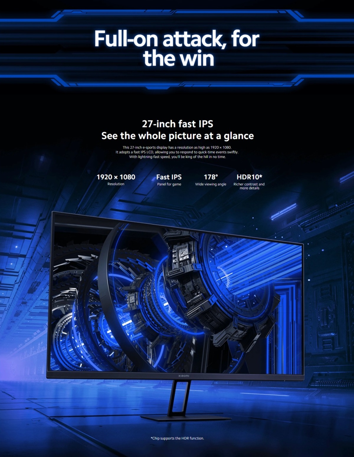 El Monitor Xiaomi Gaming G27i 27″ es ideal para quienes buscan rendimiento y fluidez en cada partida. Con resolución Full HD 1920×1080, tasa de refresco de 165Hz y 1ms de respuesta, garantiza precisión y velocidad en juegos competitivos.